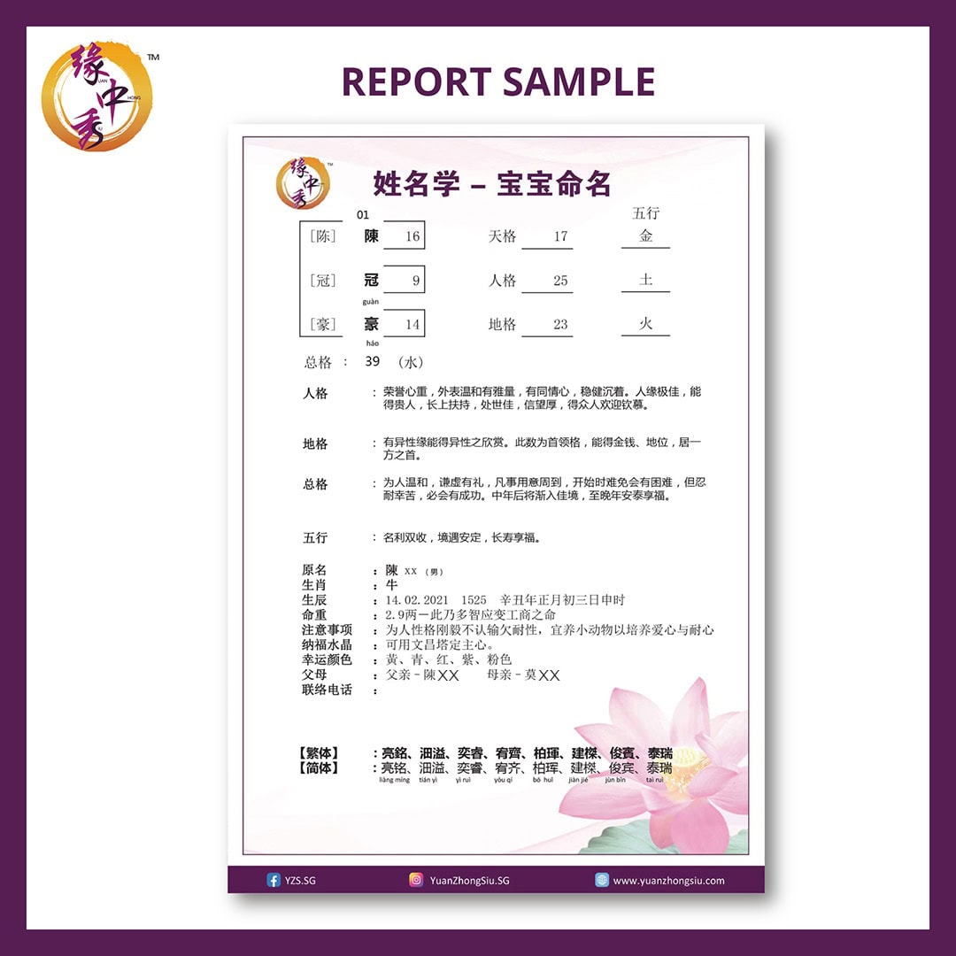 TIP – Book this service (before baby’s arrival) and submit the necessary information in advance. Upon baby’s arrival, WhatsApp us the Date of Birth & Time of Birth so Grand Master Phang can start on the naming service asap.