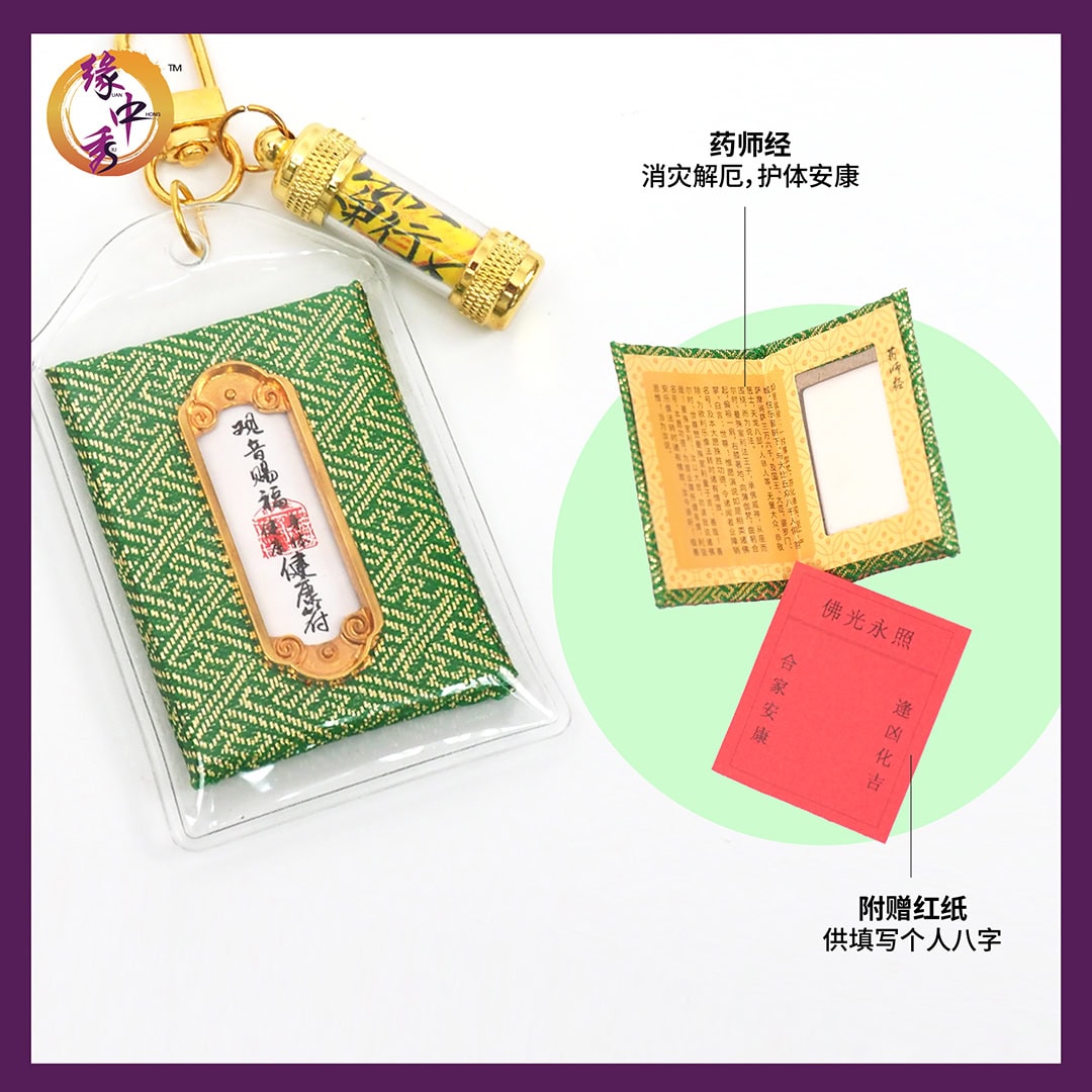 由紫杉阁洪道长开光及加持的【文昌符】,加上佛教的“东方净琉璃世界教主”药师佛诵持的《药师经》,有助断除烦恼,增长智慧福慧,获得身心健康,可得事业、家庭、财运和人际关系圆满。