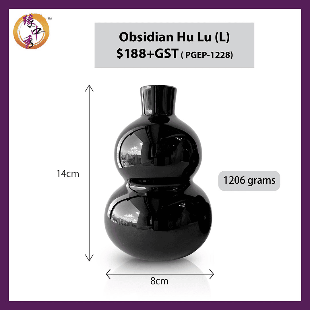 *Note: There are two sizes of the Obsidian Hu Lu available. The larger the Hulu, the stronger its effect in purging negative energies. You can choose the appropriate size based on the available space. For example, if you’re placing it on an office table, the small Hu Lu would be suitable. If you’re placing it in areas such as the washroom or an inauspicious position (煞位), the large Hu Lu is recommended.