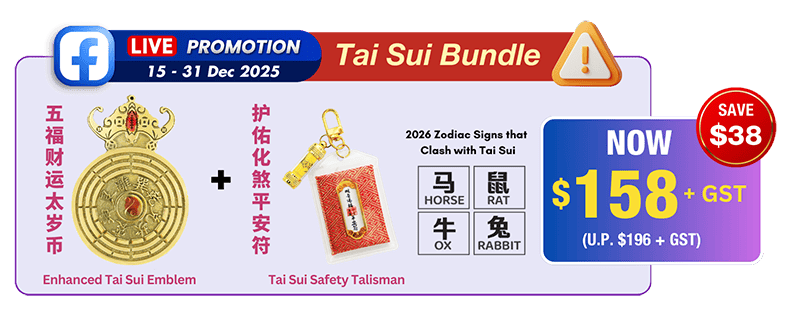 – You can place the Tai Sui Emblem anytime after Winter Solstice (冬至 2025) or on Chinese New Year’s Eve (16 Feb 2026, Monday)